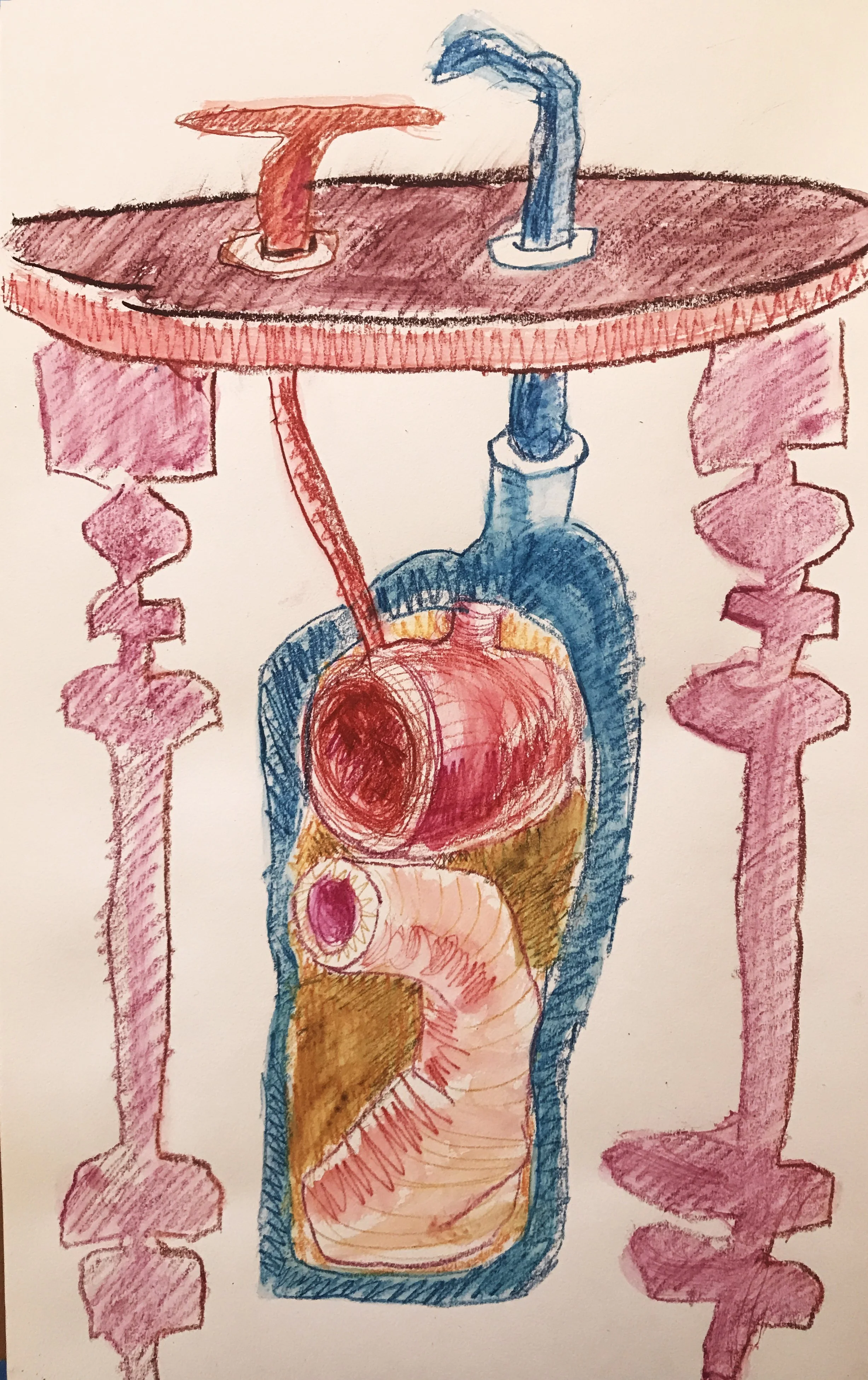 I’ve been drawing a lot of containers lately. Some of the containers are fully enclosed objects, whereas some let in and out the light and the air. I seem to want to do both: Make drawings that have firm, solid boundaries AND ones that are fluid and permeable. Some of the drawings have this bouncing-off-the-walls energy generated from confinement – and others seem to breathe, to allow the energy to flow in and out of the container. It’s my own version of alchemy. It has me thinking about our Parkinson’s experience and how the container symbol is as good as any for our life.